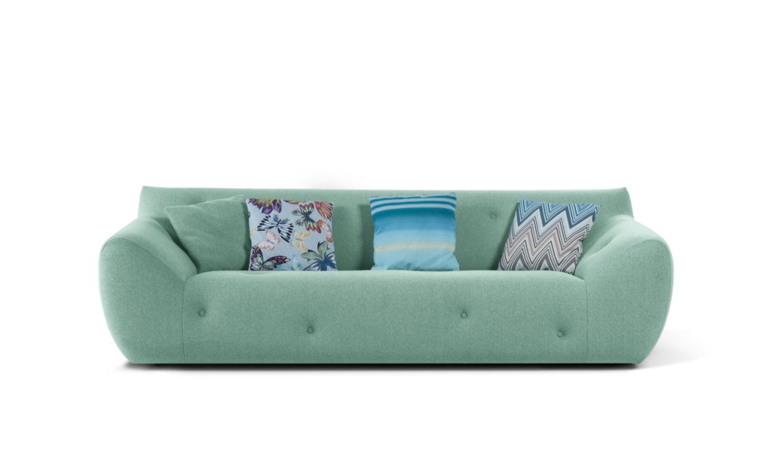 Son tissu exclusif cache une prouesse technique inédite : pour la première fois un textile d’ameublement dédié à l’extérieur possède une réelle élasticité, laquelle participe grandement à un confort moelleux. D’une douceur exceptionnelle, il gaine les formes généreuses de ce canapé au capitonnage irrégulier.