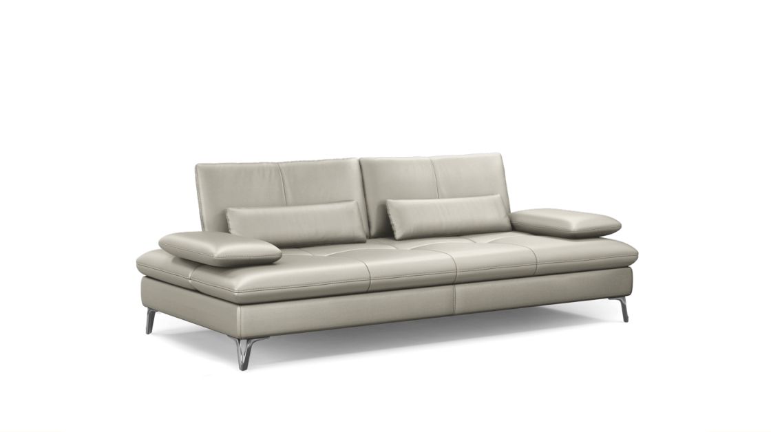 Habillé de cuir ou tissu. Dossiers à double profondeur avec mécanisme à balancier, accoudoirs avec mécaniques à ouverture latérale. Coussins d’assise capitonnés mousse polyuréthane bi-densité et fibres. Coussins de dossier mousse polyuréthane et fibres. Coussins d’accoudoir et câle-reins mousse et ouate. Structure en sapin massif, multiplis de pin et panneaux de particules. Suspension sangles élastiques HR. Piétement fonte d’aluminium finition Nickel Noir. Coussins déco en option.
