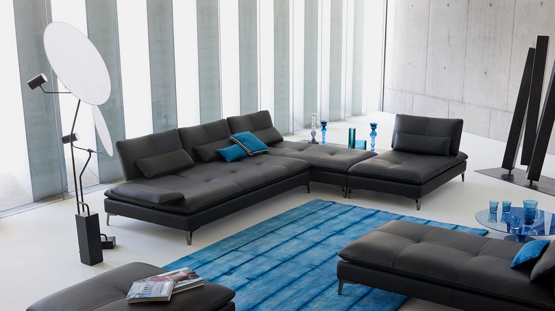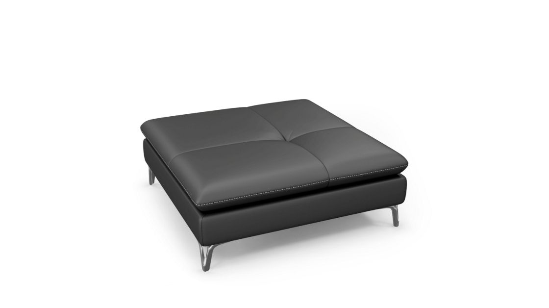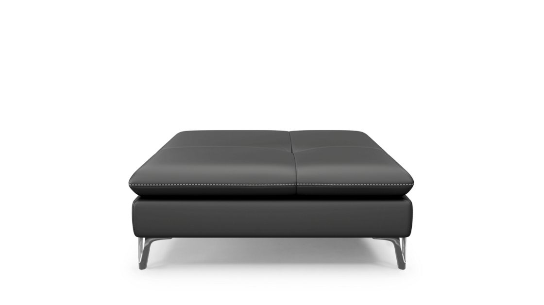 Habillé de cuir ou tissu. Dossiers à double profondeur avec mécanisme à balancier, accoudoirs avec mécaniques à ouverture latérale. Coussins d’assise capitonnés mousse polyuréthane bi-densité et fibres. Coussins de dossier mousse polyuréthane et fibres. Coussins d’accoudoir et câle-reins mousse et ouate. Structure en sapin massif, multiplis de pin et panneaux de particules. Suspension sangles élastiques HR. Piétement fonte d’aluminium finition Nickel Noir. Coussins déco en option.